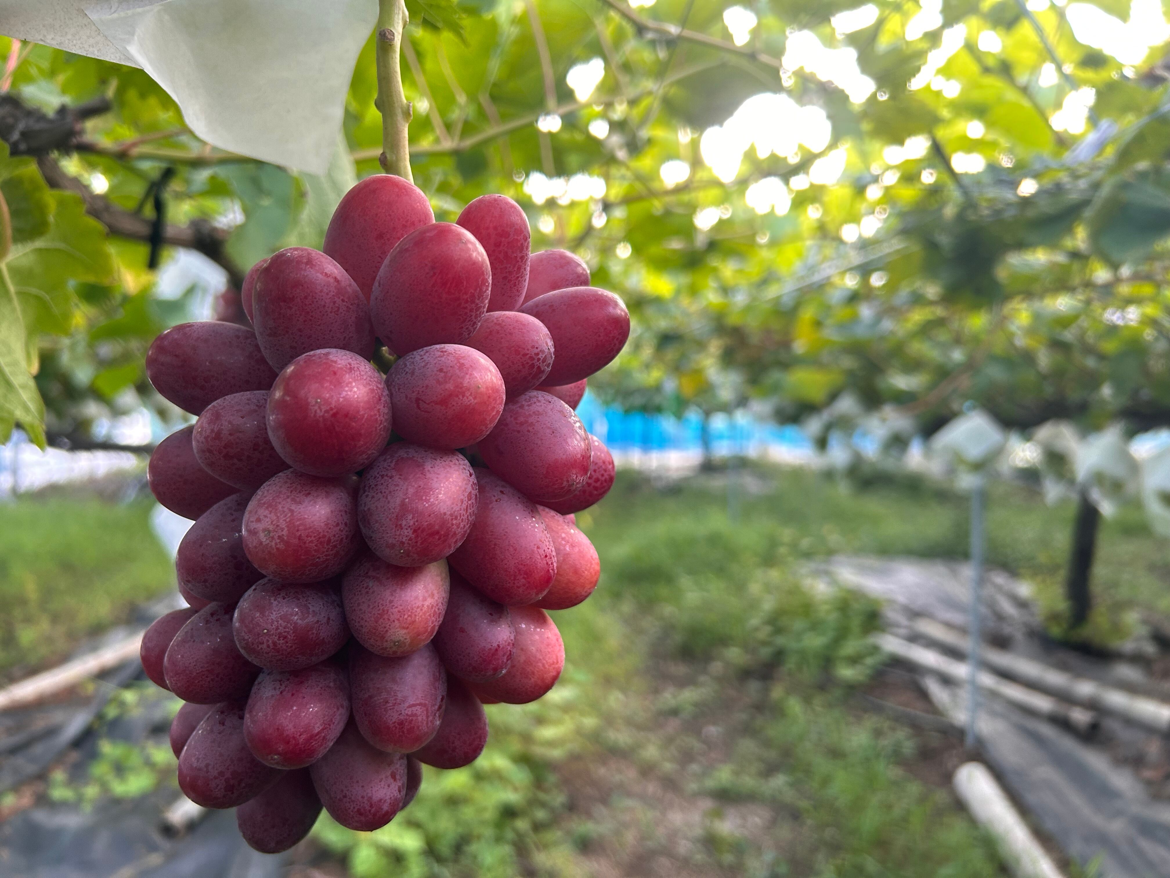 神紅の名にふさわしい鮮やかな紅色の大粒ぶどう。